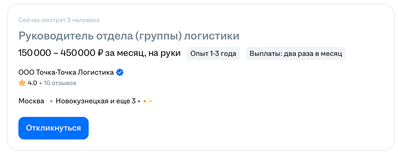 Посмотрим, сколько получают логисты, на примере реальных вакансий с hh.ru.