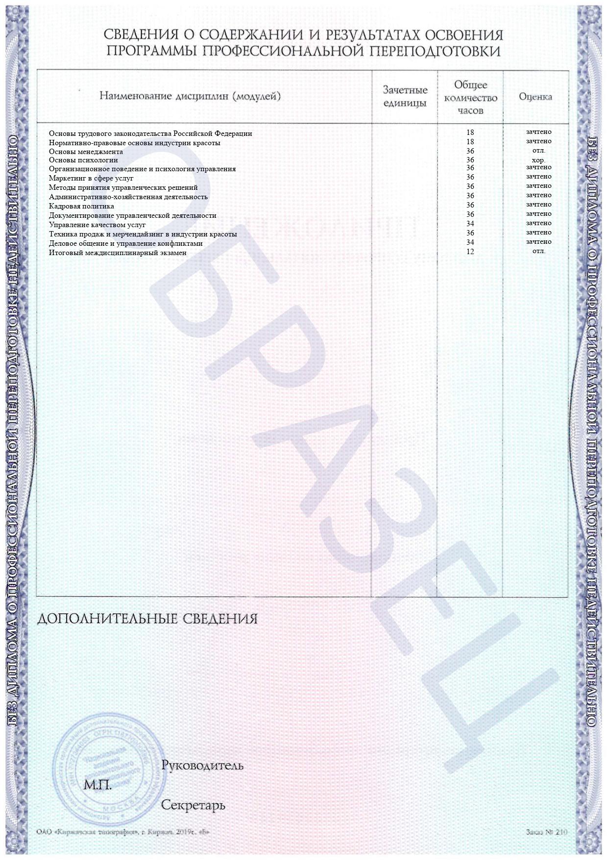 Раздел специальных дисциплин