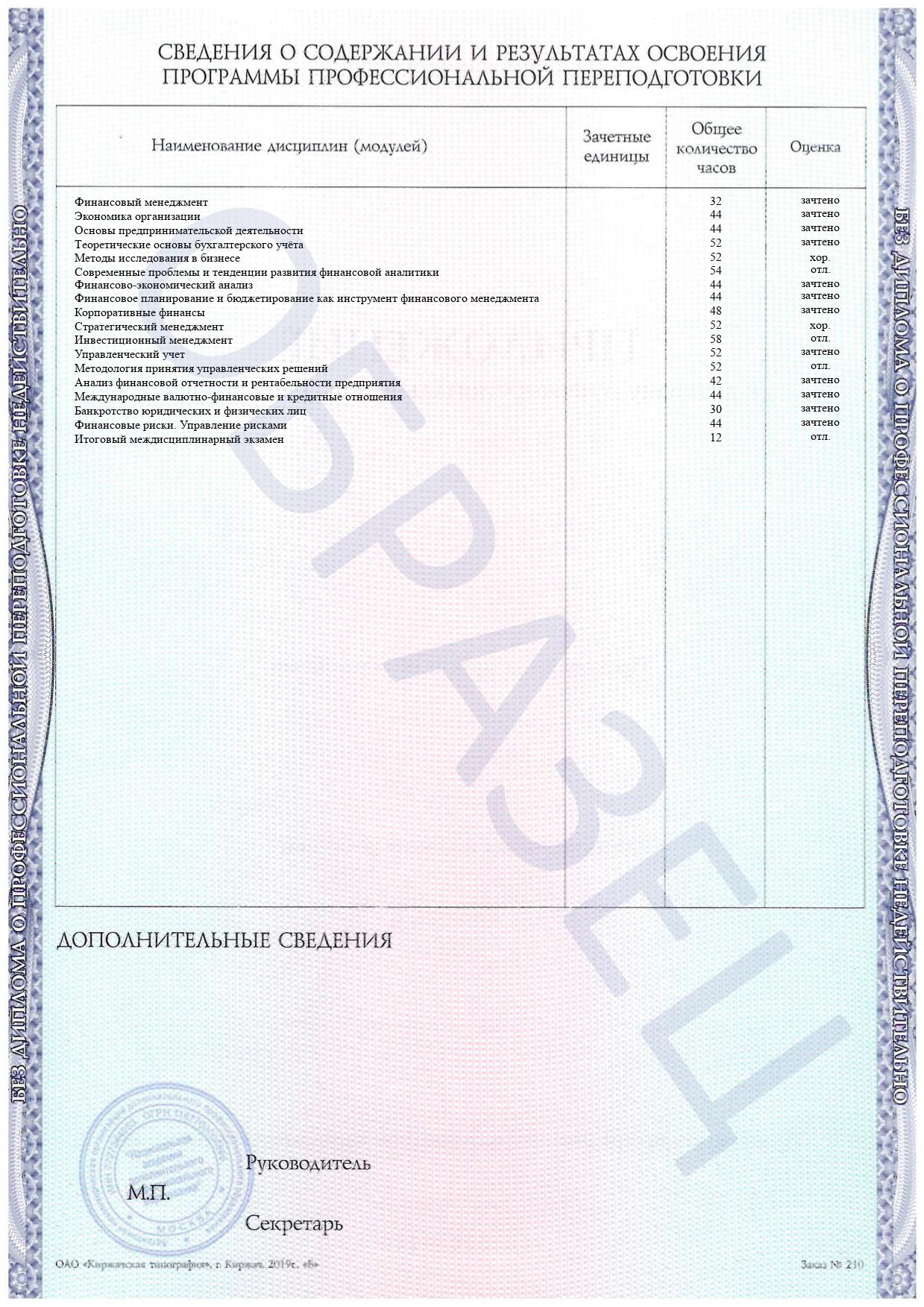 Раздел специальных дисциплин