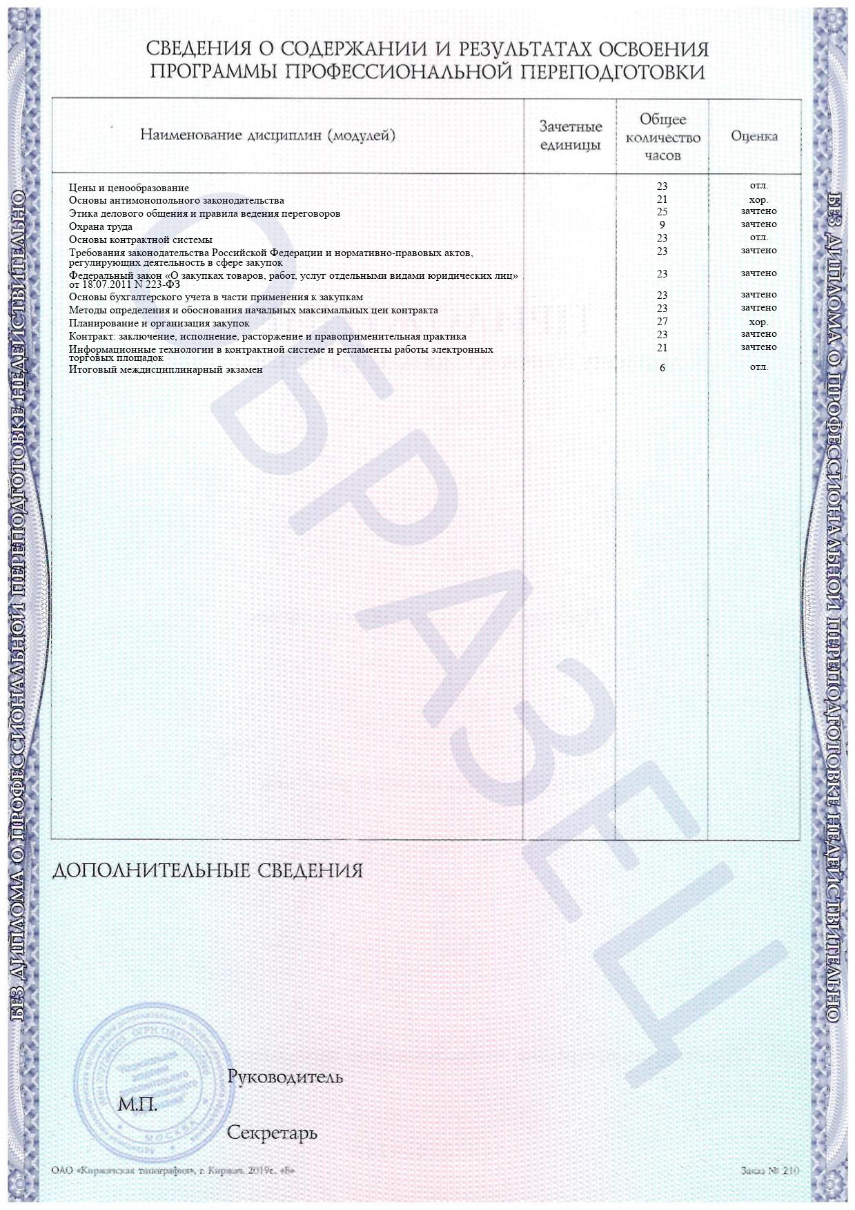 Раздел специальных дисциплин