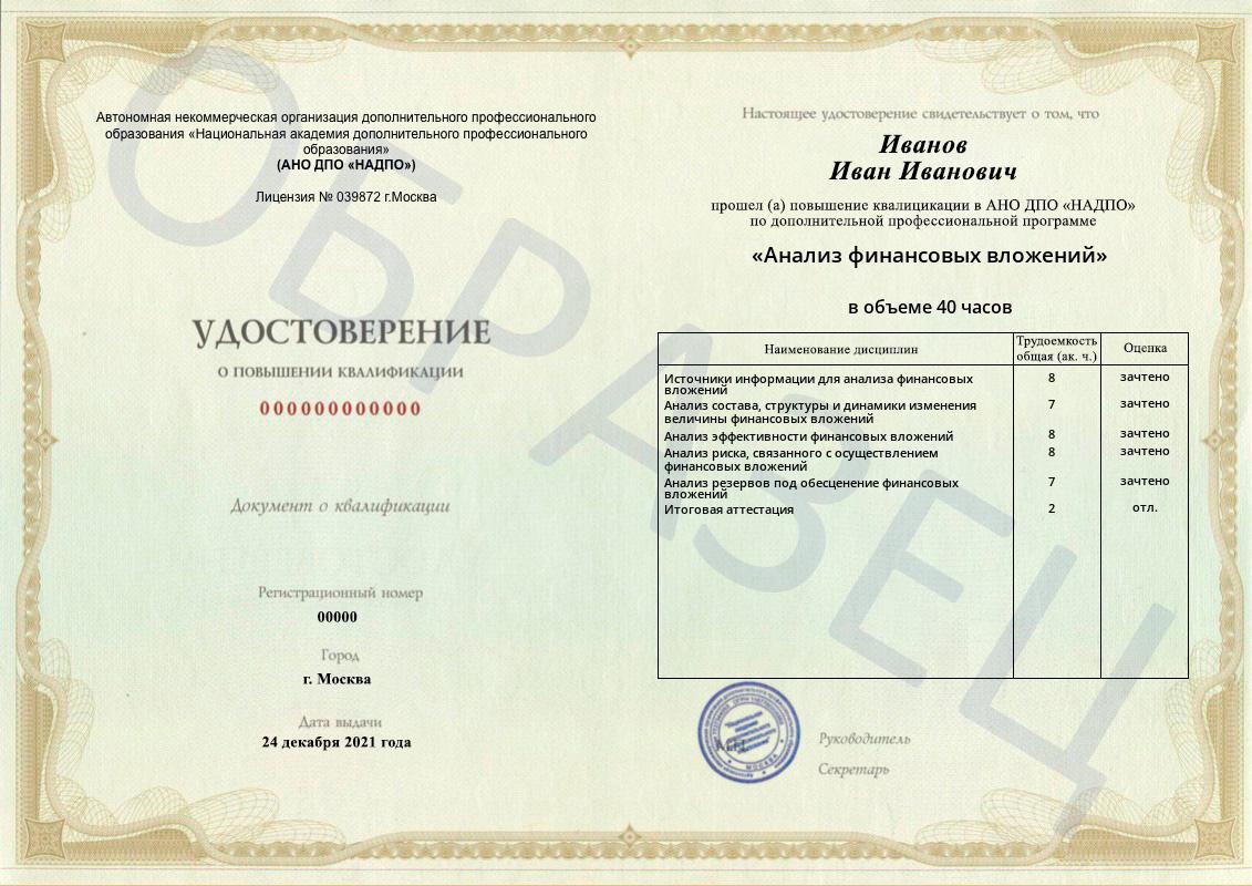 «Анализ финансовых вложений»(40 часов)