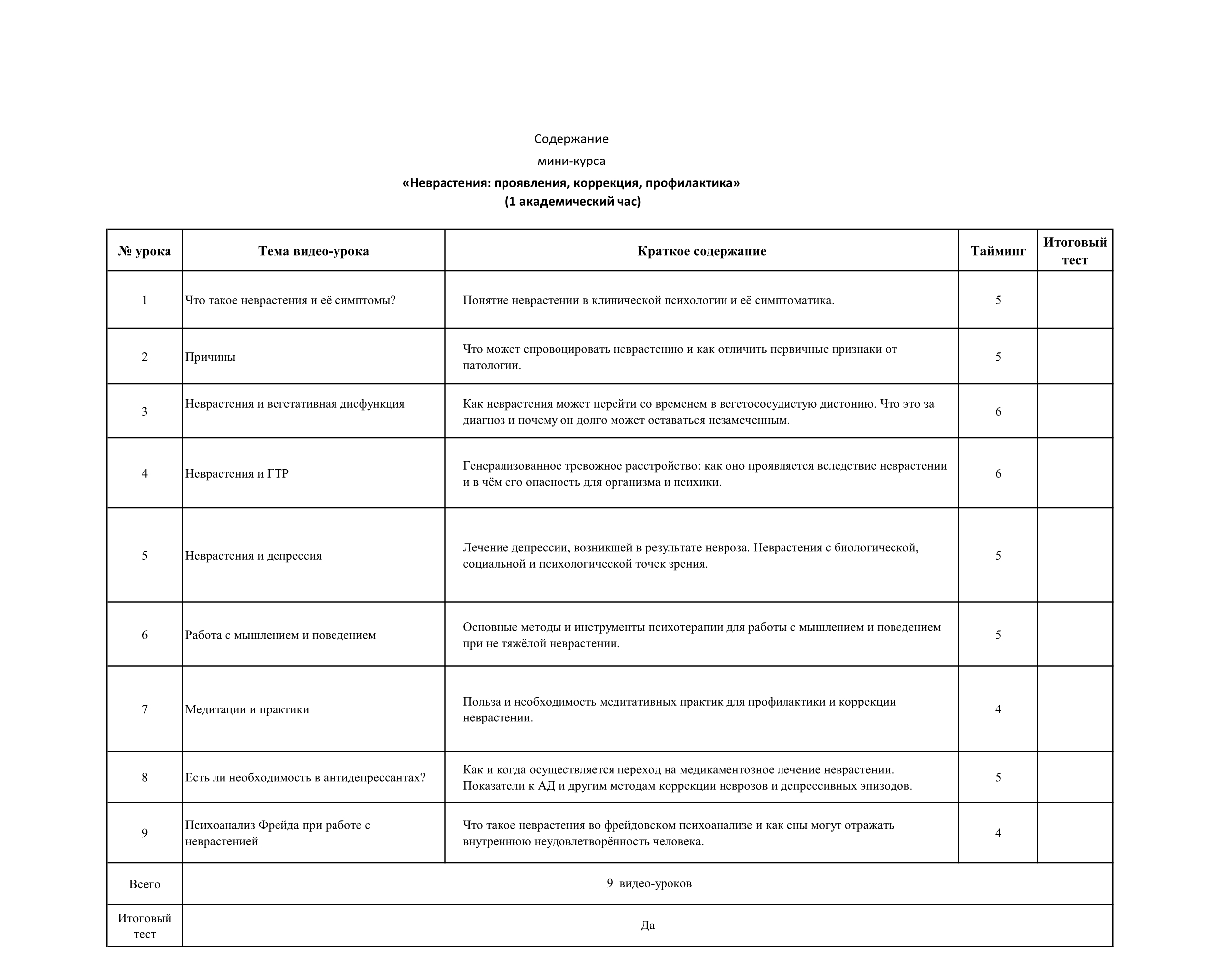 Также курс будет полезен для начинающих психотерапевтов, поскольку программа затрагивает общие принципы диагностики неврастении и других психо-