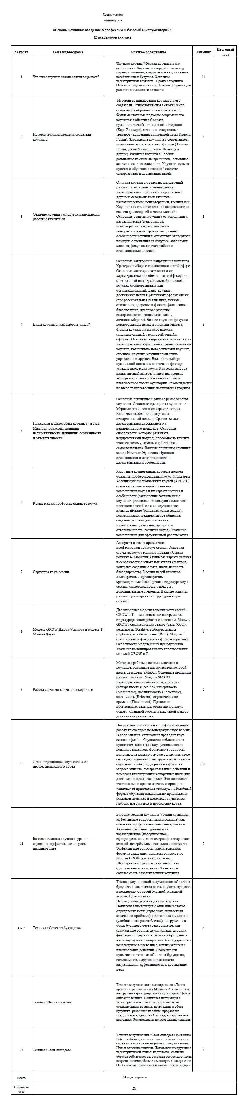 | № урока | Тема видео-урока | Краткое содержание | Тайминг | Итоговый тест | ||