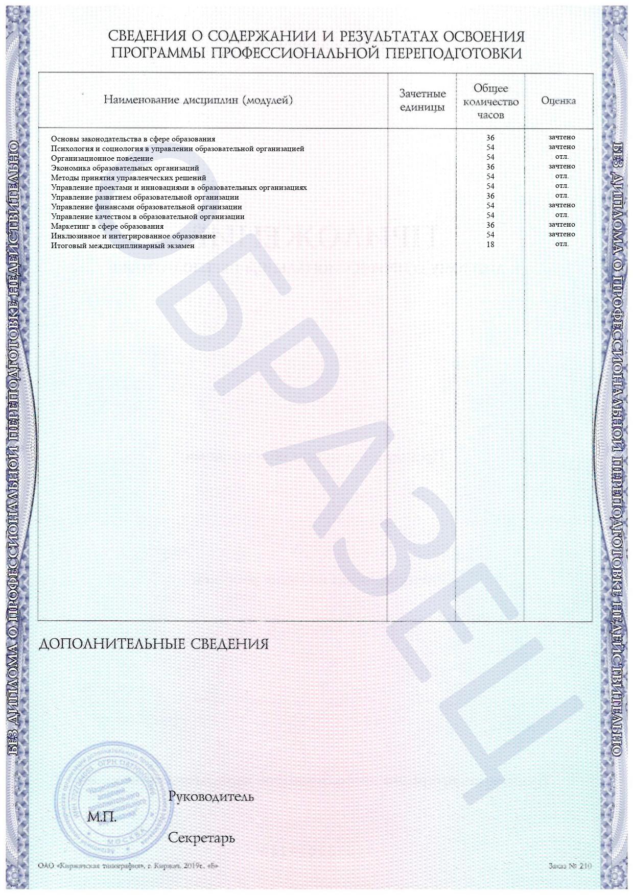 Раздел специальных дисциплин