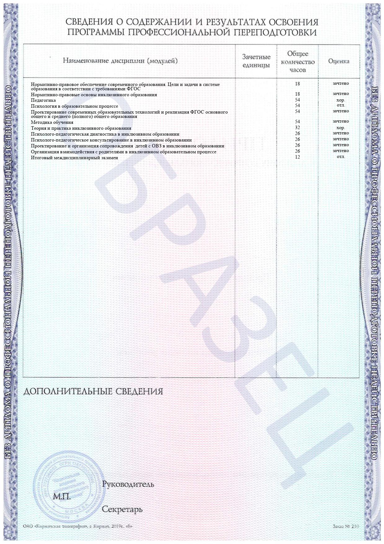 Раздел специальных дисциплин