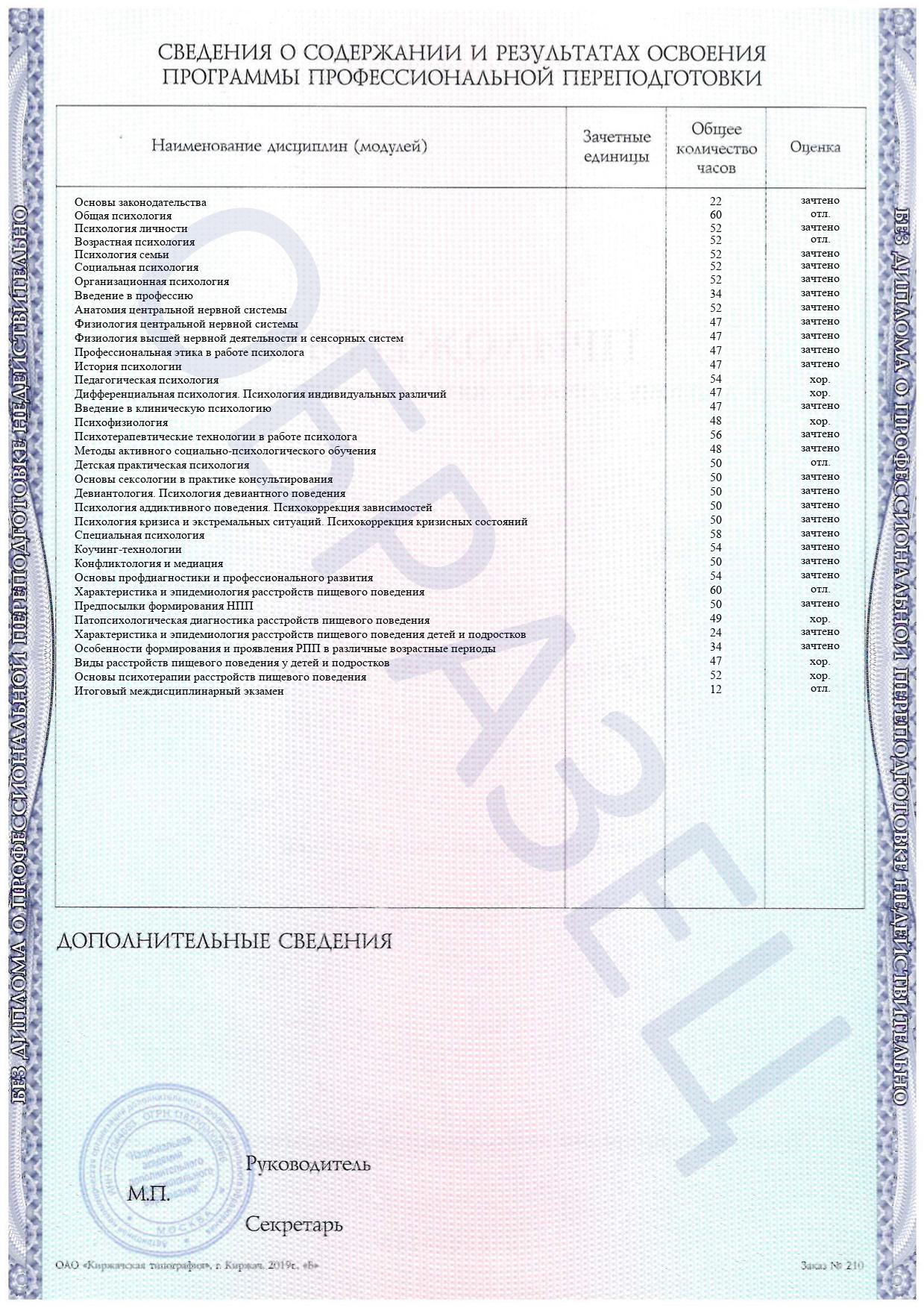 Раздел дисциплин дополнительной специализации