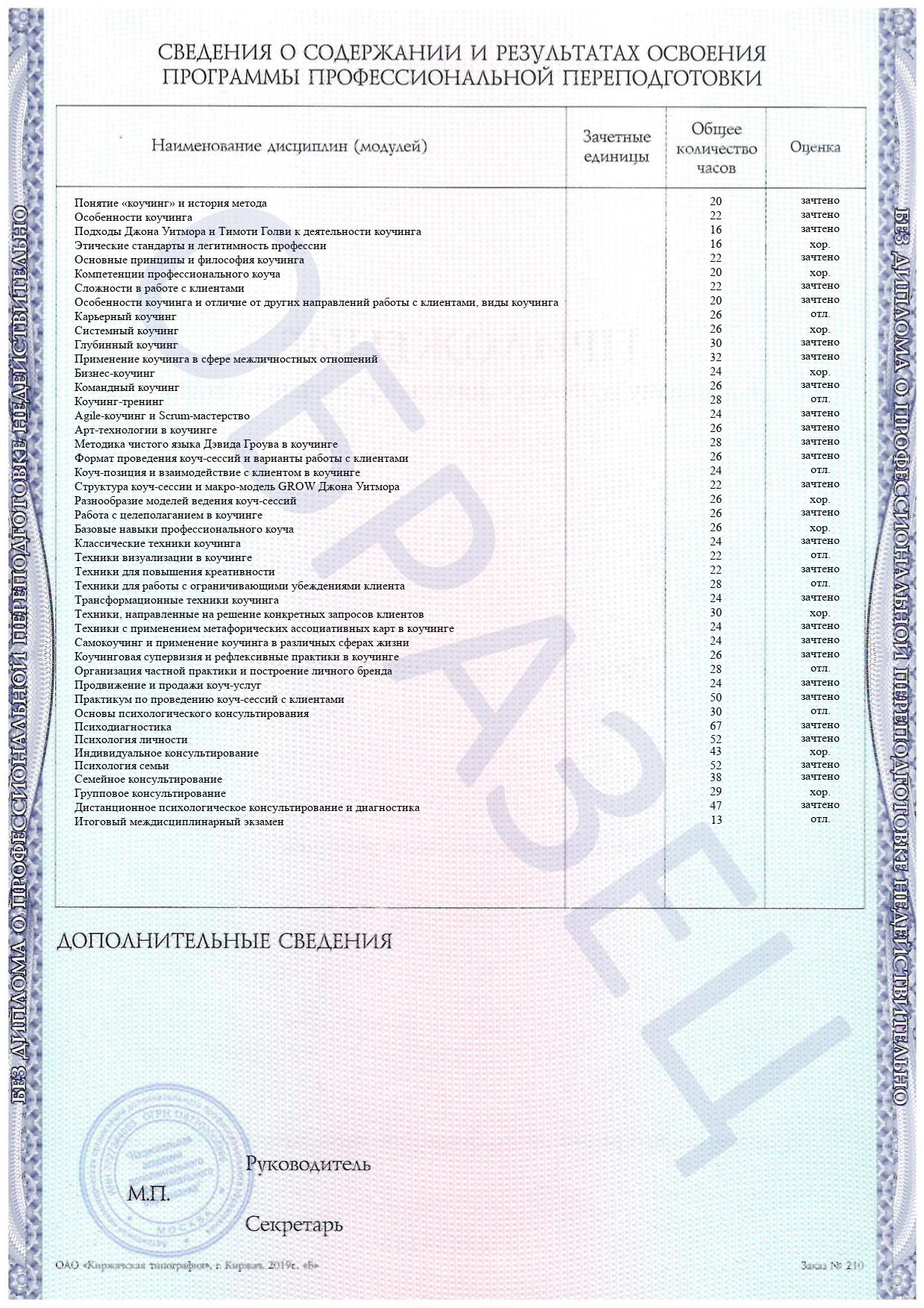 Квалификации: Специалист по коучингу (коуч). Психолог-консультант