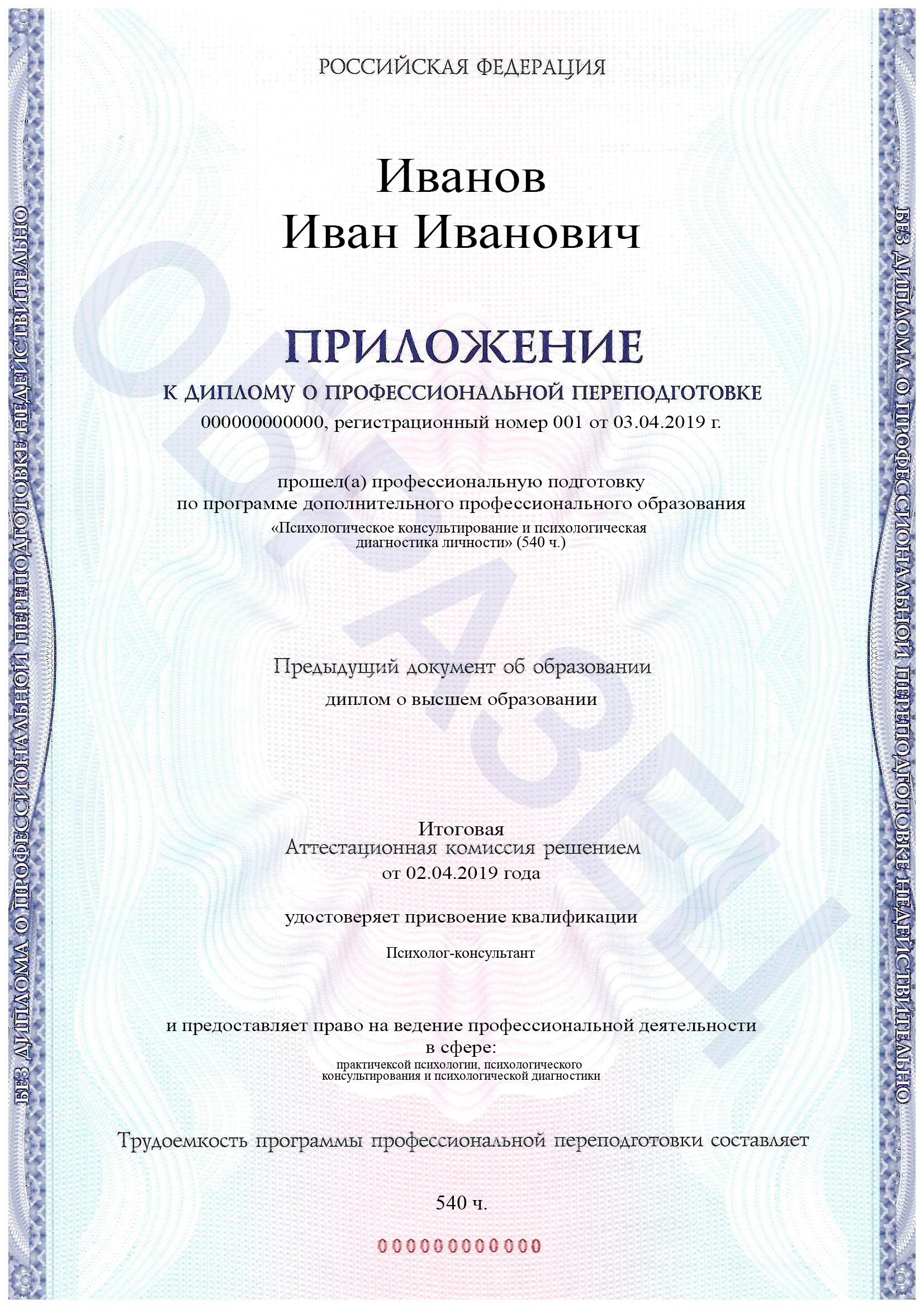 Тип документа: Диплом (тариф Эксперт, тариф Профессионал-практик)