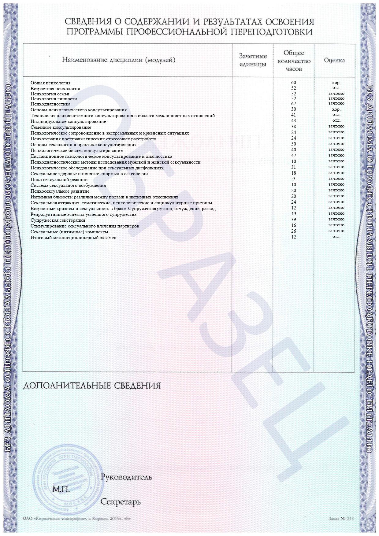 Раздел специальных дисциплин